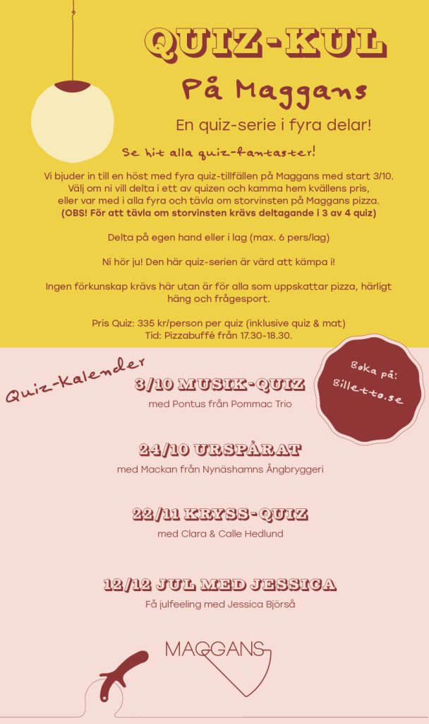 Är ni ett större sällskap pizzaälskare i form av familj, vänner eller kollegor som önskar boka Maggans helt och hållet för er själva? Det går finemang! Här på Maggans finns drygt 40 sittplatser inne i matsalen.